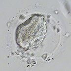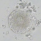 裸化した卵子は、大きさ、第一極体の有無、透明帯の状態、色や形などから判断します。